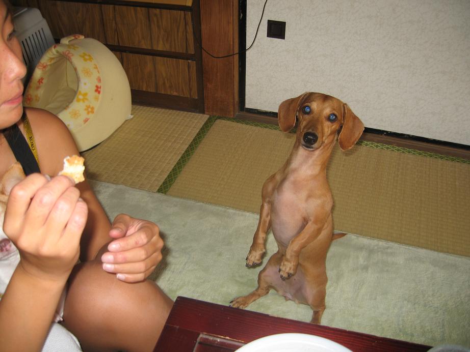 ちょうだいちょうだいで待ち過ぎて、立ったままお座りしてしまいました~・・・ミーアキャット?!