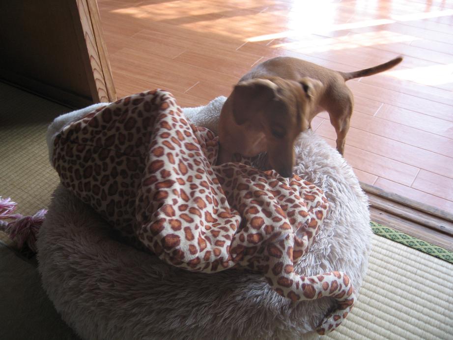 トイ君は毛布にくるまるのが得意で、マーレーは毛布の中が動いているのが大好きです♪いいコンビだ!!
