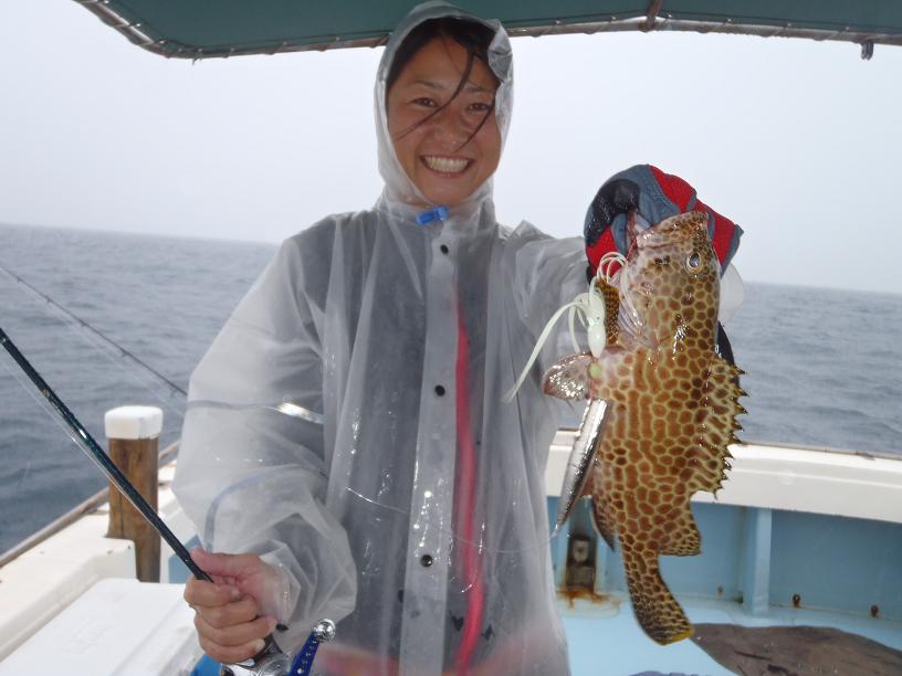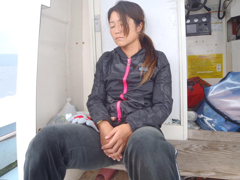 途中、大雨の大しけになりながらも、カッパ着て・・・