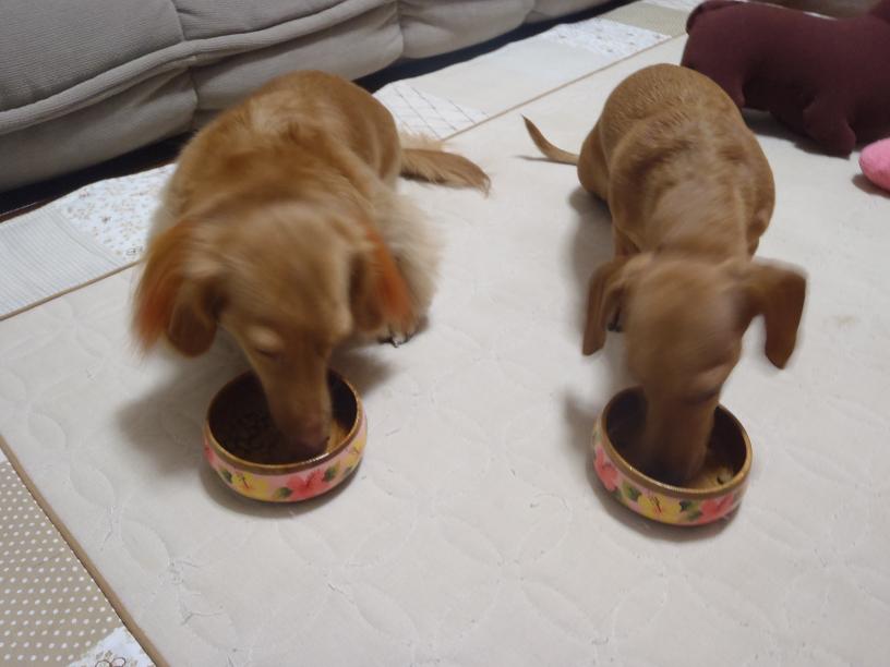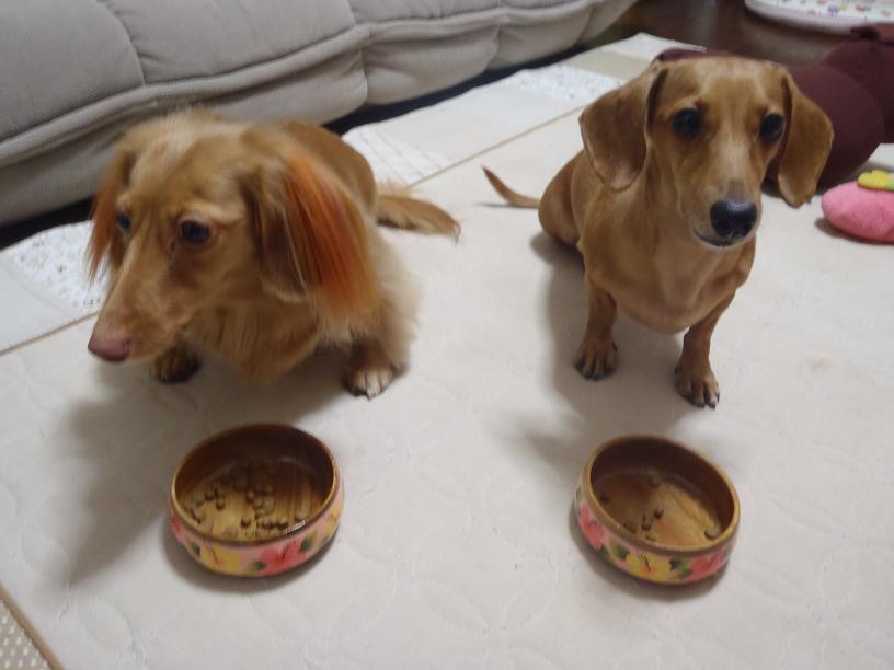 「待て。」・・・2匹とも違うとこ見てる・・・(笑)