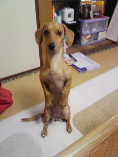 普通ダックスは足が短いので 座ったまま立つ。という事なんてできないはずなのですが 胴長短足なため立つと ミーアキャットそっくりです(#^.^#)
