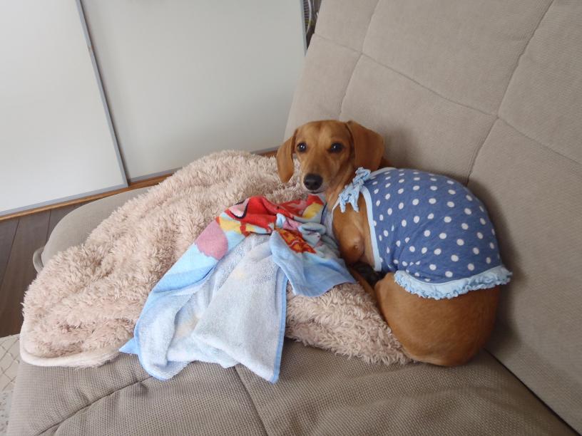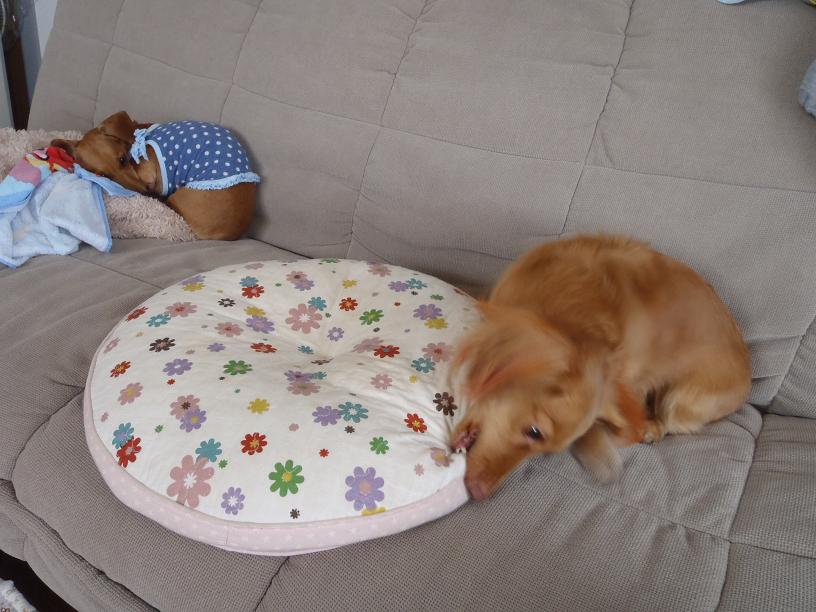 えらい寒そやで(笑)これでもかっ!ってくらい丸くなってる(●^o^●)かわいい♪いちお、服着せたげてんけど、あんま変わらんみたいやね(^_^;)