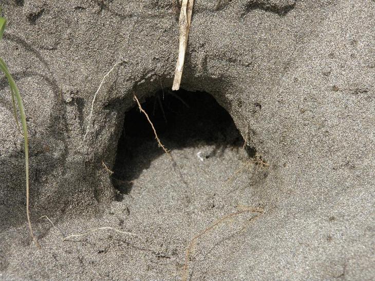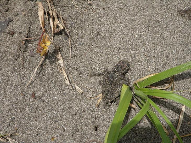穴から出て来た、砂まみれの”うみがめのあかちゃん”