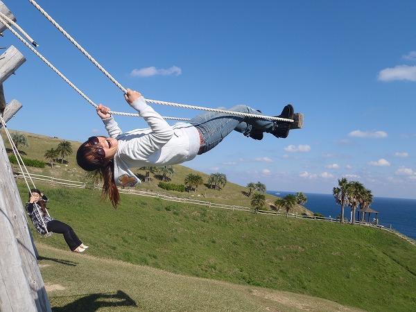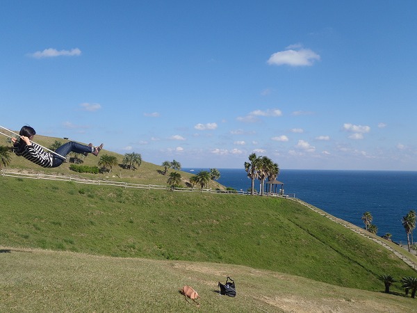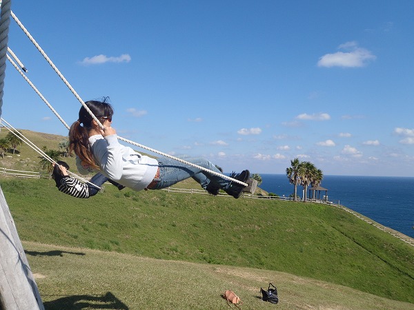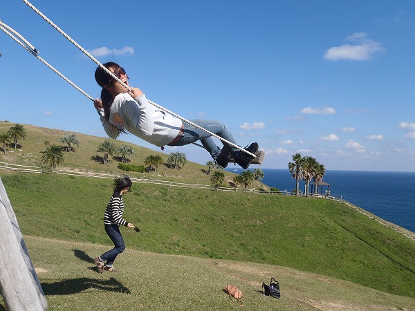 丘の上に立ってるブランコ思いっきり漕いだら、海に投げ出されそうな感じでめちゃんこおもろいねん(●^o^●)えっ??妹たちより楽しんでるんじゃないか??