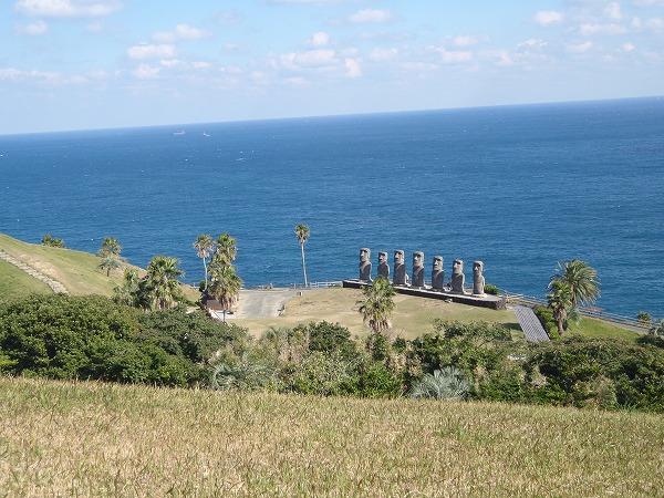 こんなきれいな丘の上に、たくさんのモアイが・・・(p_-)