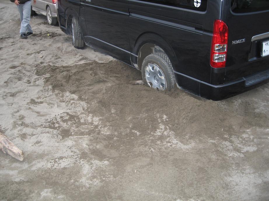 でも、軽自動車じゃーびくともしない(>_<)大きい車を待つものの軽ばっかりでなかなかけーへん↓