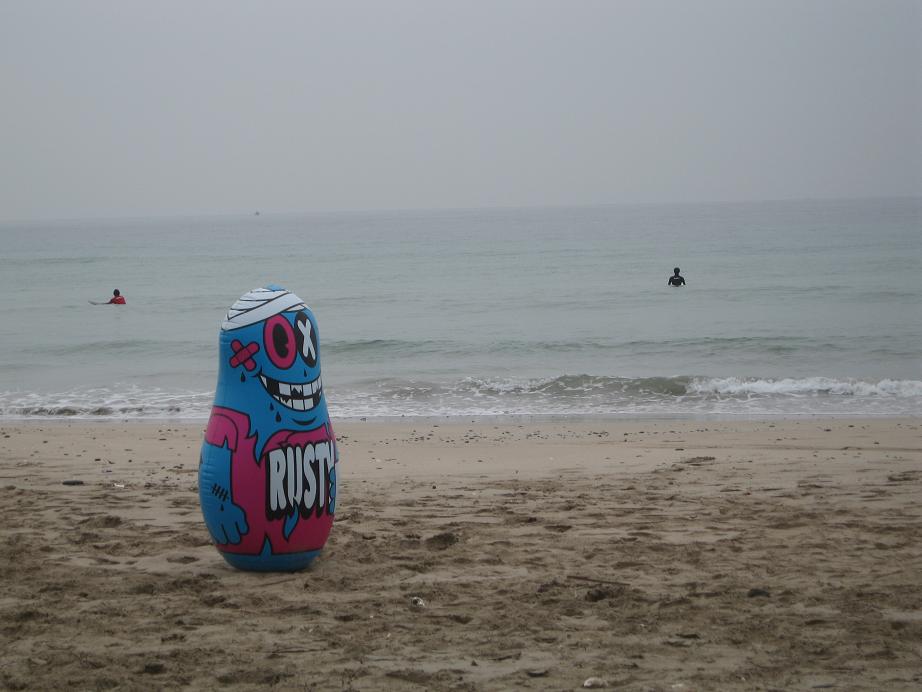 まず大会前日のいちご浜 2人して顔隠してもバレバレ