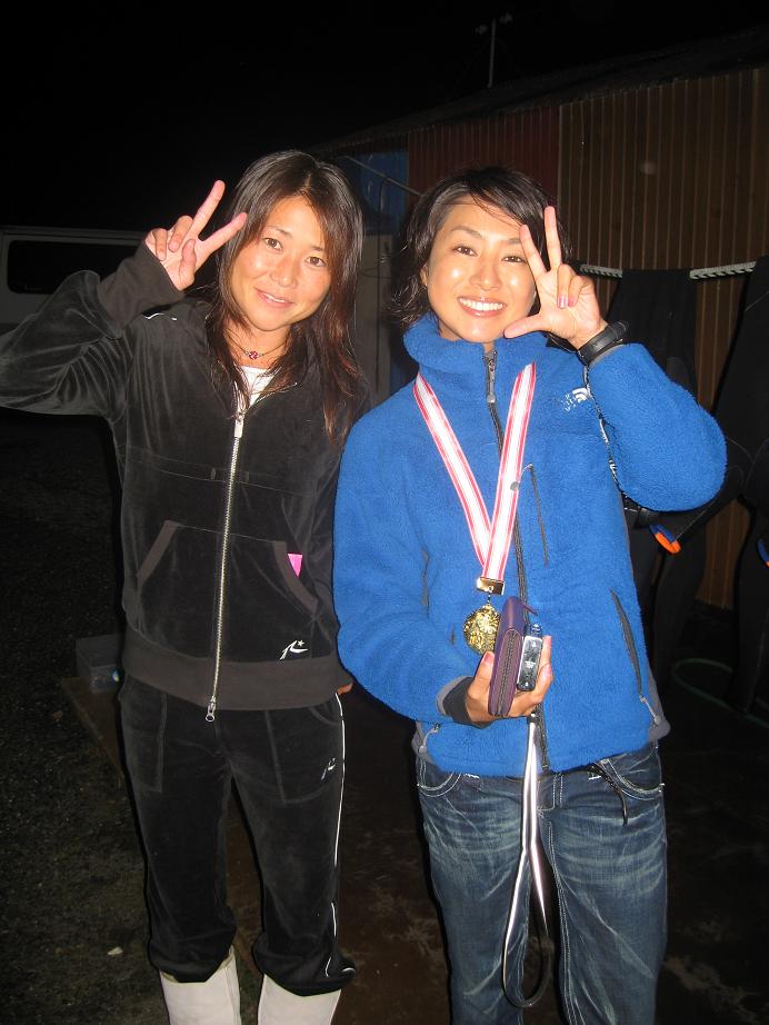 大会当日の波・・・↓↓ さちと国井律子さん。きれいな人です。