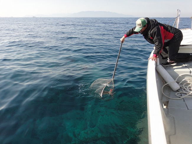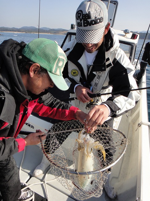 イカ釣りって、エギをうまい事動かしては、海底に落とし・・・動かしては、落とし・・・を繰り返して、イカを誘って釣るっ!!!
