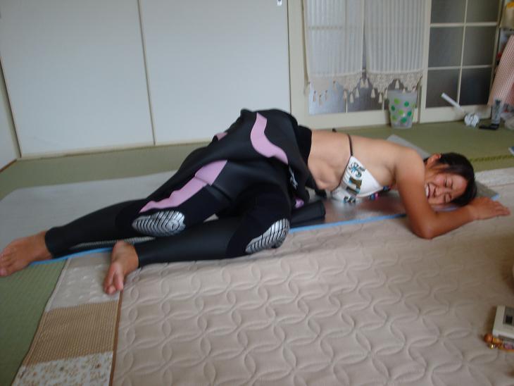 海から上がって、部屋かたずけたり、洗濯してるうちに汗だくなって、フルスーツやから撮影ギリギリまで、着たくなくて、いざ着ると汗ですべらず、太ももでとまってなかなか上がらない・・・(-.-)途中で、ダウン・・・