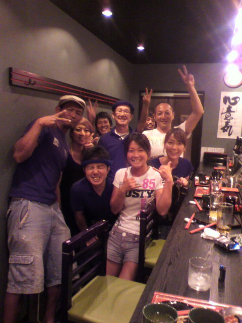 そして、晩は鮪男倶楽部のお手伝いをしにお店に行ったら、”team off the wall"のたけちゃん、おとうと夫妻、48ちゃん&まぁちゃん、なかいさん、がお店に食べに来てくれました~(*^^)v
