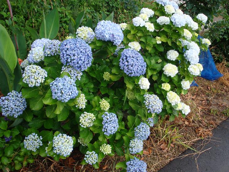 そういえば、昨日おとついと雨やったし、近所のアジサイは満開♪