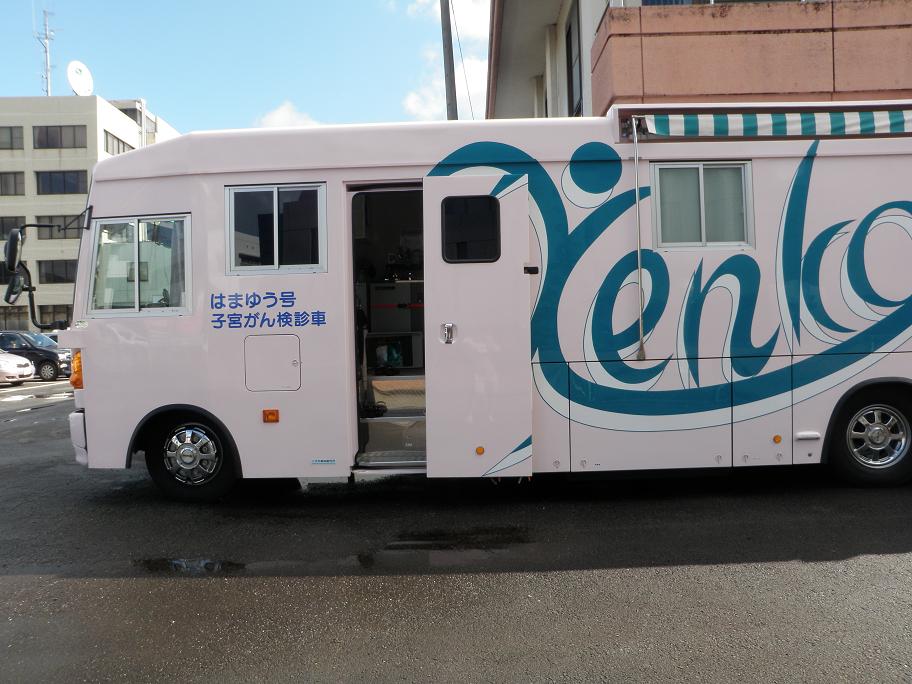 こんなバスが来てくれて、2人ずつ密室でっ!先生の顔も見ずにっ!検診する事が出来て、スムーズで良かった(^_^)vだって、集団検診ってゆうから、みんなのまえではずかしい姿みせびらかさなあかんのかと・・・(^_^;)女だらけやから、えぇ~けども・・・(苦笑)