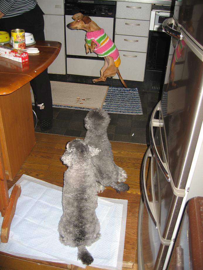 マーレーも、すっかりなじんできて、お母さんからごはんをもらうのに、いつもどうり、ジャンピングでさいそく!!