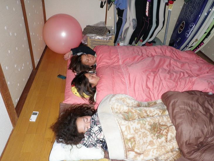 おとついさとみんが、バイトから帰ってきて見た光景(^▽^)♪私が無理矢理あいだに入らせてもらって、このあとさとみんも加わって、4人でお互いのぬくもりを感じながら、就寝しました♪(笑)