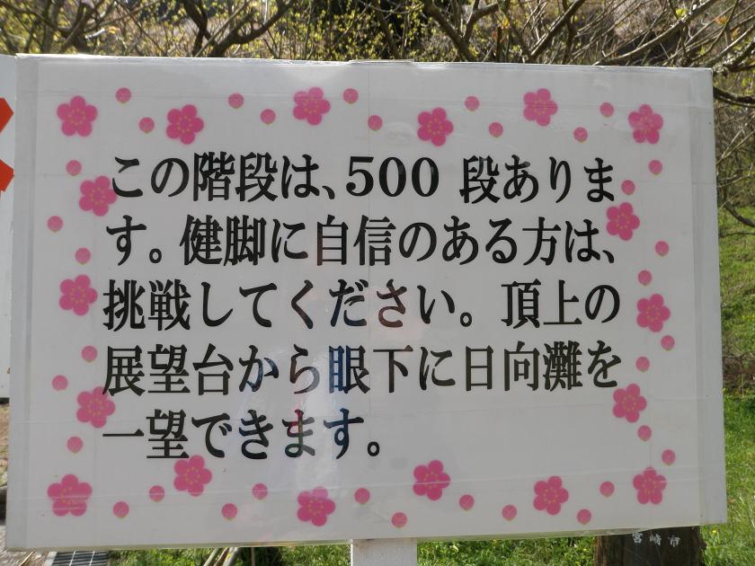 こんなかわいらしい看板やったら、間違えて足悪い人も登ってまうんちゃうか??もっとこう・・・500段!!!!!!!!!!500段ですっっっ!!!!!!!!!!!的な書き方にしてください(苦笑)