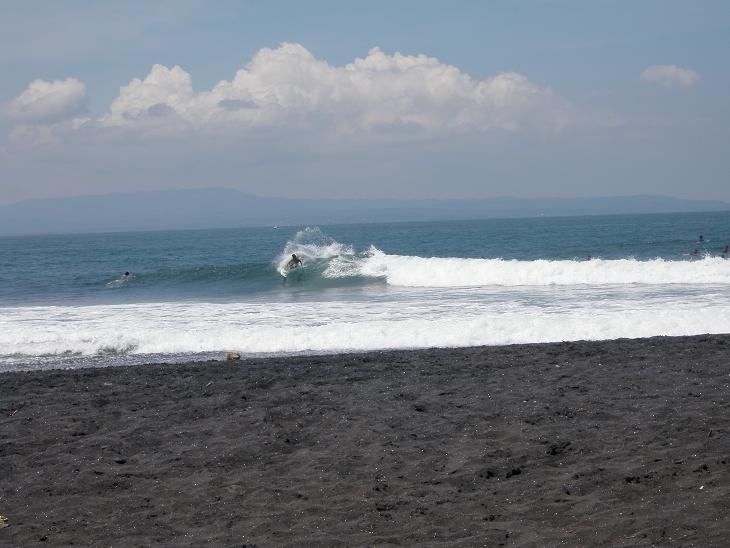 セット頭オーバーくらいかな??ちょっと開き気味で横波って感じ。コツがつかめず始めちゅうちょしたけど、横に走りながらのテイクオフで何とか・・・もうちょっと研究したいな・・・。