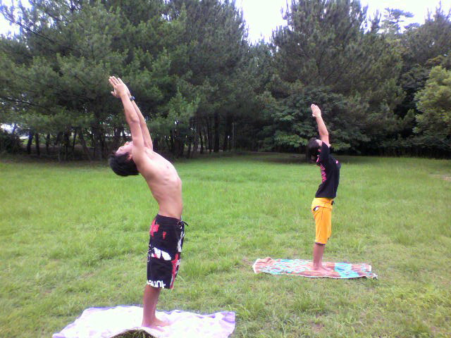 ヨガに入る前のちょっとの瞑想中 自分の体を感じ 波の音…虫の鳴き声…風で揺れる木々の音…を聞きながら…♪