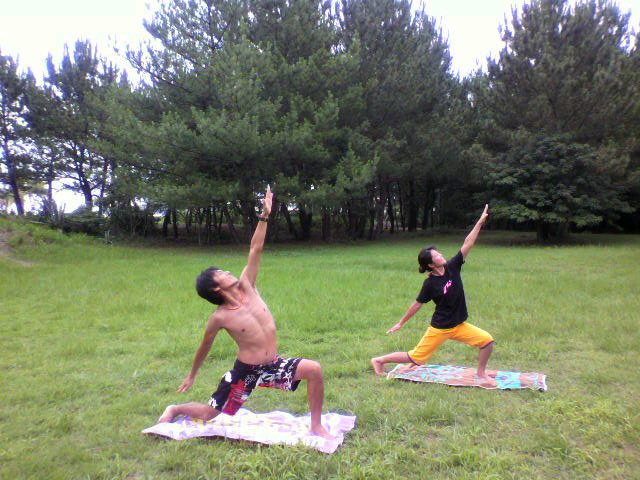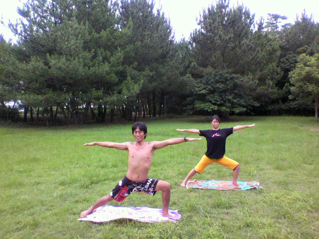 久々に天気も良いっ♪っちゅ~ことで 昨日はトレーナーの渡辺さんと外でヨガ&トレーニングしていただきました~(^o^)/