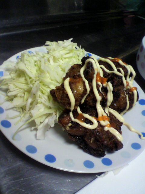 唐揚げにマヨネーズかけて バリのサンバルかけて~超うんまぁ~~い(*^-')b