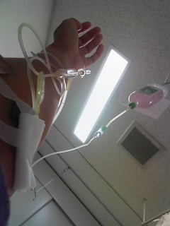 病院では だいぶ待たされたあげく 点滴長くて 疲れました(>_<)