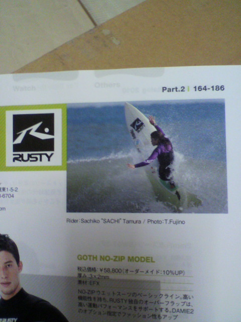 遅ればせながら 4月に発売された、"サーフスタイル2010 サーフギアカタログ"に RUSTY 板&ウェットが掲載されています(*^-')b