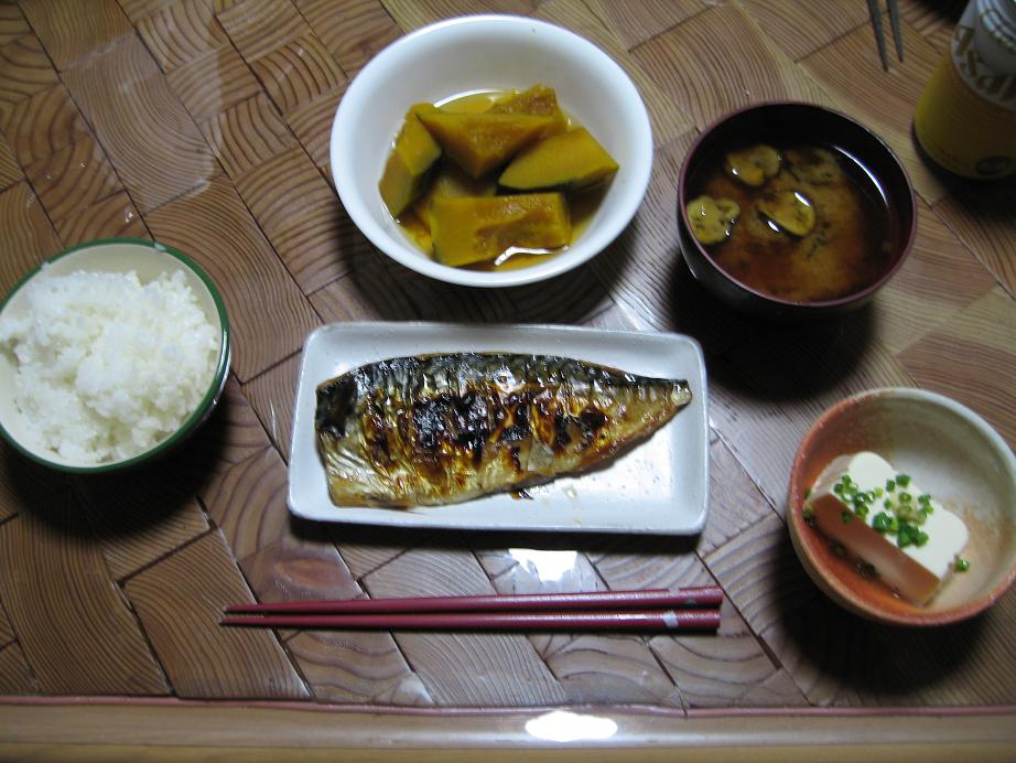 かぼちゃとなすびの味噌汁&サバ定食~(^。^)y