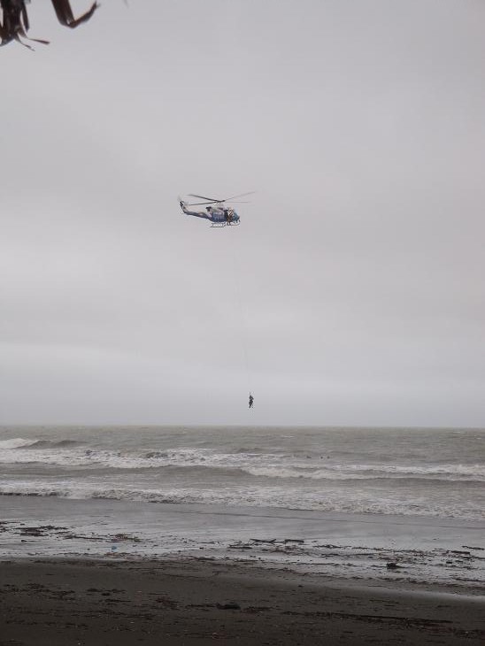 大会途中、大会とは関係なく、サーファーが何人か流され、ヘリコプター出動してました。