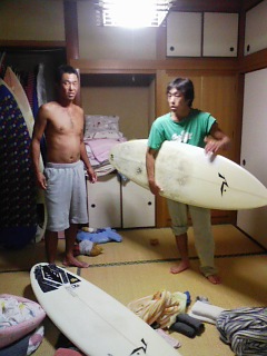 友達のさとっちゃんと海から上がってきて、着替える間もなくサーフィン講習会!!