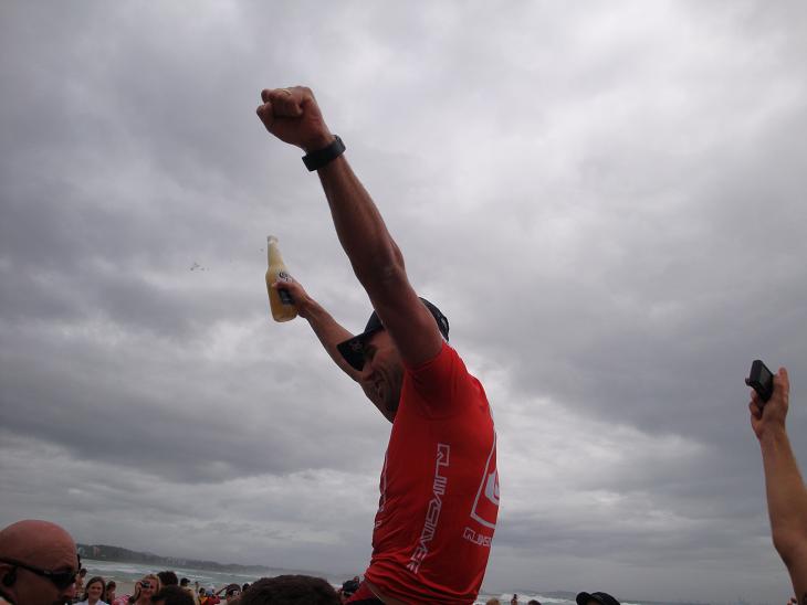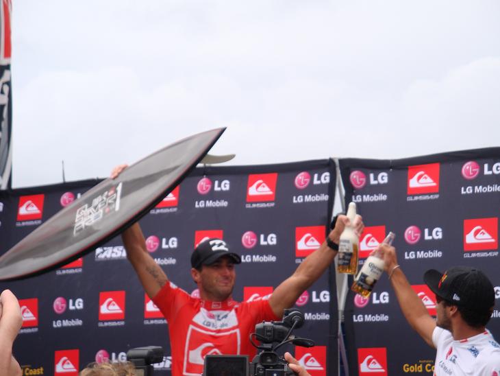 ミックは中盤、良い波チューブメイク2本して、1位におどりでるも、パーコの逆転パーフェクト10チューブメイクで、残念ながら2位に終わった。でも、GOOD JOB MICK!!